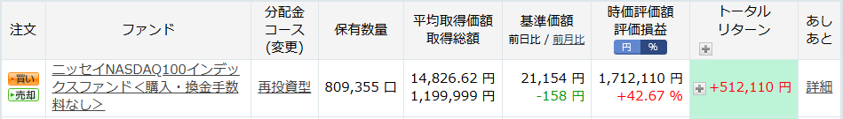 投資信託:「ニッセイNASDAQ100インデックスファンド運用実績」